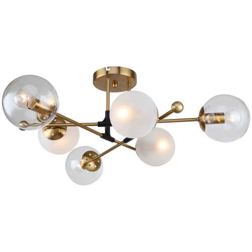 Люстра на штанге потолочная, латунного цвета, выполнена в стиле модерн. Люстра Rivoli Darlene (арт. 3145-306) – дизайнерская, её оформление создано в Италии в соответствии с самыми последними трендами дизайна интерьеров. Минималистичные латунные рожки люстры представлены в формате перекрёстных реек. 6 круглых плафонов изготовлены из разного стекла: 3 плафона – прозрачные, 3 плафона – матовые. Люстра потолочная латунная Rivoli Darlene применяется с лампами Е14 мощностью 40 Вт. При использовании всех источников света качественно осветит площадь до 18 м2. Дополняет коллекцию люстра Rivoli Darlene под 8 ламп (арт. 3145-308) и настенное бра под 2 лампы (арт. 3145-402).