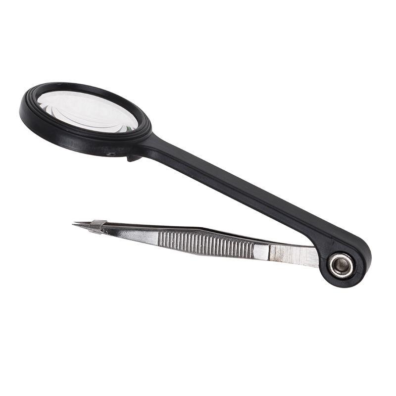 Удобная лупа со встроенным в рукоятку пинцетом представляет собой устройство, предназначенное для улучшенного рассмотрения изображений, текстов и различных деталей. Отлично подходит для рукоделия. Диагональ линзы - 24мм. Такая конструкция будет полезна, когда пользователь работает с мелкими предметами, которые нежелательно трогать руками, например, с коллекционными монетами. Также данная конструктивная особенность позволяет удерживать в одной руке лупу и объект, зажатый в пинцете, а второй рукой проводить необходимые манипуляции. Изделие выполнено из качественных материалов и имеет долгий срок службы.