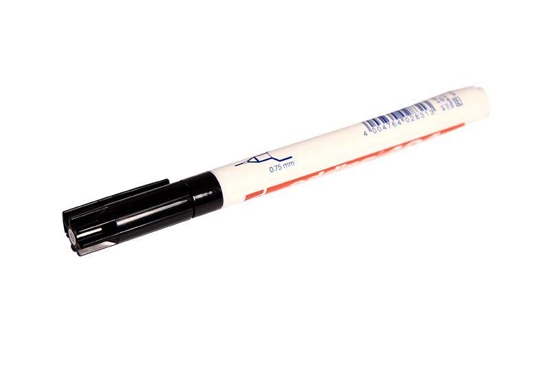 Перманентный маркер E-404 (для рисунка печатных плат) черный предназначен для нанесения постоянных, практически не удаляемых надписей, которые не смываются водой, устойчивы к выгоранию и истиранию. Подходит для любых гладких предметов: металлических, деревянных, стеклянных, картонных, пластиковых, керамических и т. д. Позволяет маркировать экстремальные поверхности, такие как влажное дерево, грязный и ржавый металл, пленки, кафель. Маркер оснащен круглым сменным наконечником (404 N) и не требует при письме нажатия на корпус, что исключает появление царапин и повреждений на пленчатых материалах. Заправляется чернилами Edding T-25, которые практически не имеют запаха. Специальный состав влагостойких чернил на спиртовой основе не разъедает поверхность пленки. Корпус изготовлен из ударопрочного пластика. Хранить с плотно закрытым колпачком в горизонтальном положении.