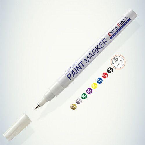 Перманентный маркер с чернилами белого цвета отлично подходит для нанесения маркировки на большинство поверхностей: метал, стекло, пластик, дерево, бумага и т.д. Чернила обладают совйствами высокой укрывистости, светостойкости, непрозрачности, нетоксичны (не содержат ксилол и толуол). Время высыхания 15 секунд (зависит от типа поверхности). Длина непрерывной линии 250 метров (зависит от типа поверхности). Вес чернил 1,5 грамма. Диаметр пишущего узла 2,45мм