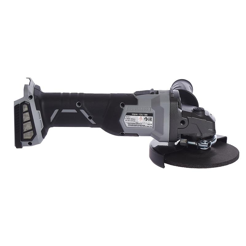 Профессиональная аккумуляторная углошлифовальная машина c вентильным бесщеточным приводом применяется для резки и шлифовки металлических или каменных материалов, обработки их крацовками и т.п.. Аккумуляторная УШМ оснащена Li-ion слайдерными аккумуляторным блоком платформы АПИ. Использование вентильного двигателя позволило получить энергетические характеристики машины, значительно превосходящие характеристики не только аккумуляторных машин с коллекторным приводом, но и сетевых аналогов, за счет более высокого КПД (выше на 30%). Это позволяет выполнять больше работы на одном заряде и таким образом экономить режим работы аккумуляторного блока. Воздухозаборные решетки находятся на максимально возможном расстоянии от точки обработки и дополнительно защищены металлической сеткой, передний подшипник шпинделя имеет лабиринтную защиту. Рекомендуется для профессионального использования. Высокая энергоэффективность, отличная производительность, мощность и надежность благодаря вентильному бесщеточному приводу. Экономичное использование ресурса аккумуляторных батарей за счет высокого КПД привода. Li-ion аккумуляторы АПИ позволяют сэкономить до 70% средств на каждом следующем инструменте при приобретении нескольких инструментов этой платформы. Вся механика на шариковых и роликовых подшипниках качения. Лабиринтная защита нижнего подшипника шпинделя. Защита круга оснащена бесключевым креплением. Блокировка шпинделя для замены круга и лыски под ключ на шпинделе. Корпус редуктора и нижняя крышка из алюминиевого сплава. Косозубая коническая передача для более равномерной передачи усилия и снижения уровня шума. Воздухозаборные решетки находятся на максимально возможном расстоянии от точки обработки и дополнительно защищены металлической сеткой. Моноблочная бестрансформаторная зарядка заряжает батарею за 1 час не сокращая срок ее службы. Удобная обрезиненная рукоятка. Допрукоятка устанавливается в двух положениях. Удобный надежный кейс.