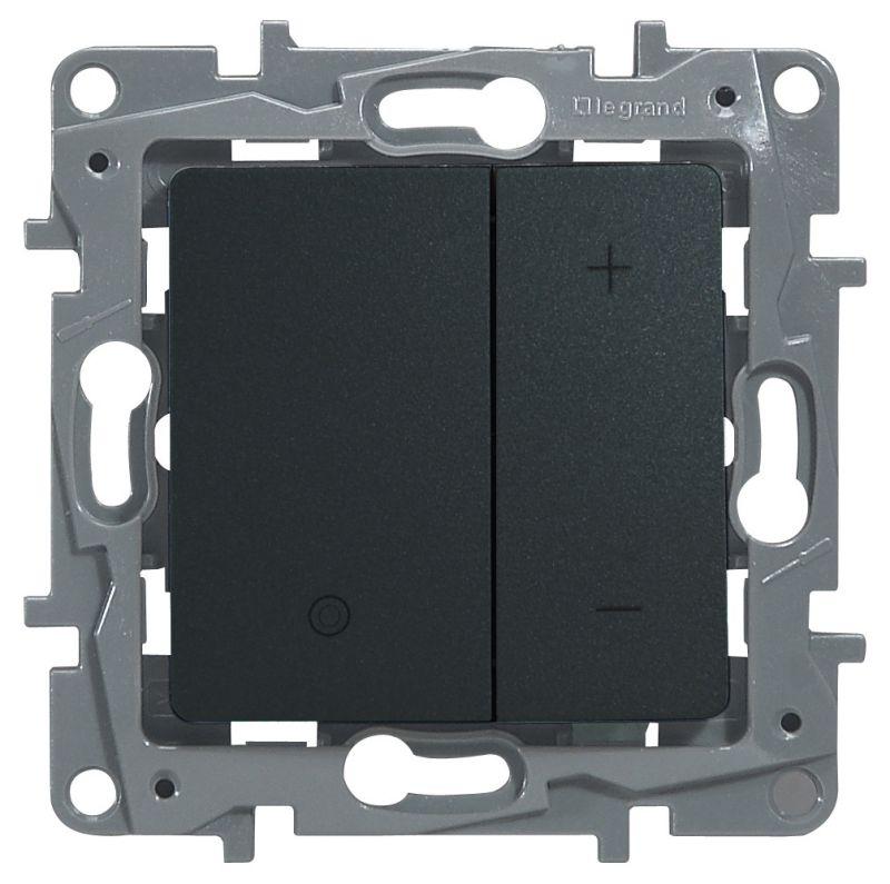 Клавишный светорегуляторEtika для скрытого монтажа, цвет антрацит. Позволяет регулировать яркость ламп. Экономит электроэнергию. Благодаря функции плавного включения существенно продлевает срок службы ламп. Встроенная память позволяет одним нажатием выводить яркость на комфортный уровень. Предусмотрен режим с фиксированными уровнями яркости (33-66-100%). Электронная защита от перегрузки и короткого замыкания. Особенности: - Светорегулятор универсальный.Подходит для управления лампами: Накаливания и галогенными в диапазоне 3-400Вт; Диммируемыми светодиодными в диапазоне: 3-75 Вт (не более 10 шт.) - Плавное включение и выключение; - Запоминание последнего уровня яркости; - Режим с фиксированными уровнями яркости (33-66-100%); - Режим плавного отключения в течение часа; - Защита от перегрузки и короткого замыкания. - Двухпроводное подключение (в разрыв фазного проводника). - Устанавливается в стандартную монтажную коробку. - Комплектуется инструкцией. - Возможно внешнее управление (линия до 50 метров), кнопками без подсветки с Н/О контактом. Особенности серии Etika: - Корпус механизма- высококачественный поликарбонат, не проводит электрический ток, не поддерживает горение. - Специальный профиль внешнего контура механизма обеспечивает простоту и безошибочность многопостового монтажа. - Острые крепёжные лапки с широким углом раскрытия, обеспечивают надёжную фиксацию в монтажной коробке.