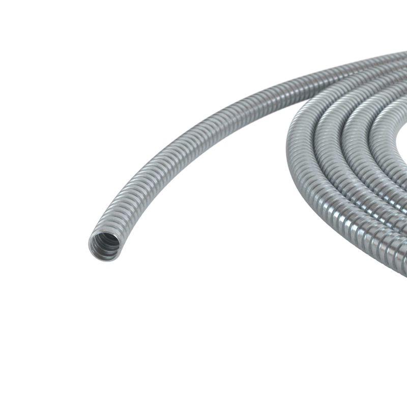 Гибкие металлические трубы могут прокладываться под удобным углом, что повышает адаптивность системы под различные задачи и облегчает монтаж. Отличительные особенности металлорукавов - гибкость и высокая прочность. Металлорукав из оцинкованной стали применятся для прокладки электрических, телефонных, телевизионных проводов. Внутренний диаметр - 40 мм.