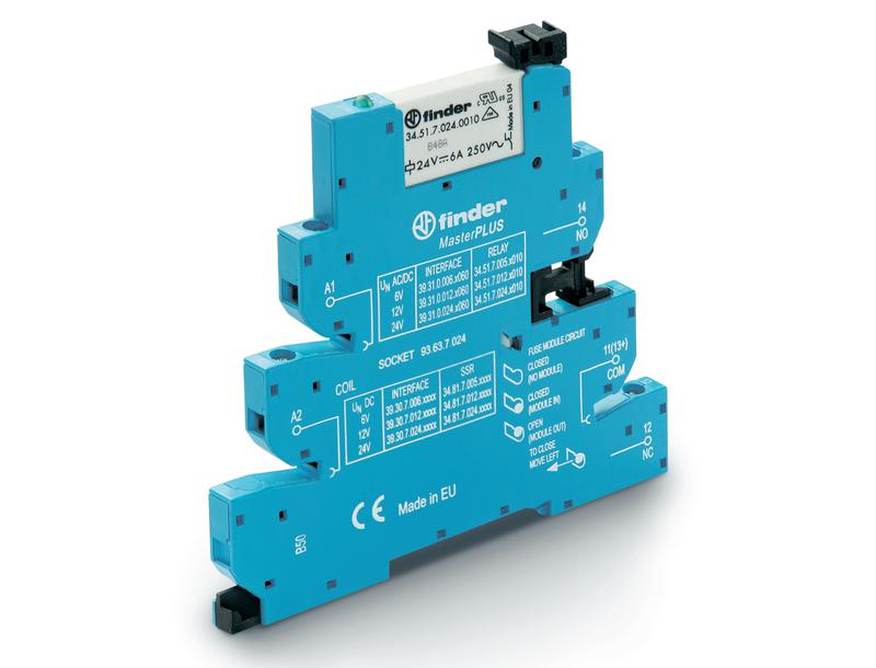 Модуль интерфейсный (сборка 34.51.7.060.0010 + 93.63.3.230) электромеханич. реле серия MasterPLUS 1CO 6А AgNi 230-240В AC/DC подавление утечки тока IP20 винт. клеммы FINDER 393132300060