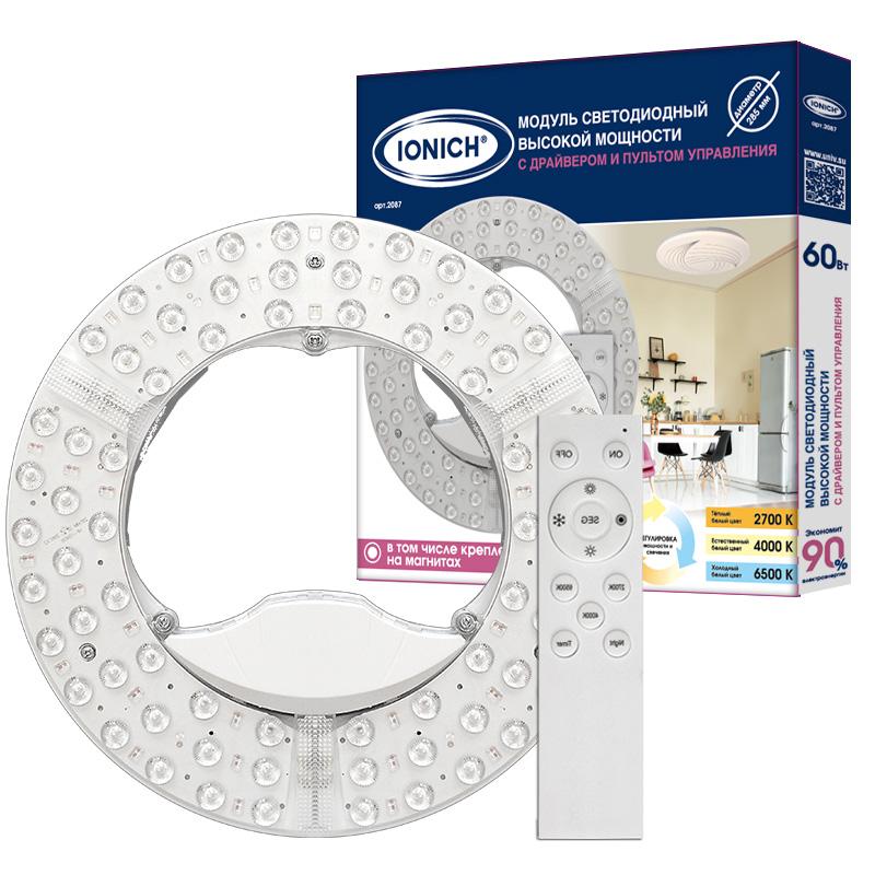 Модуль светодиодный высокой мощности с пультом ДУ для декоративных светильников 60Вт 230В 3000-6500К d285мм диммир. IP20 IONICH 2087
