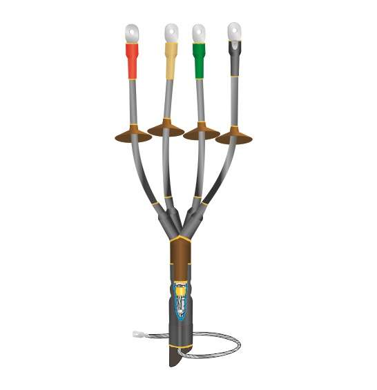 МУФТА КОНЦЕВАЯ ТЕРМОУСАЖИВАЕМАЯ МАРКИ 1КНТпН-4х(35-50) С НАКОНЕЧНИКАМИ БОЛТОВЫМИ НАРУЖНОЙ УСТАНОВКИ предназначена для оконцевания 4-х жильных силовых кабелей сечением 35, 50 кв.мм с бумажной или с пластмассовой изоляцией, с броней или без брони, на напряжение до 1 кВ включительно. Универсальна в применении. Устанавливается на открытом воздухе при температуре окружающей среды от 50°С до +50°С и относительной влажности до 98%, в том числе в качестве мачтовой. Соответствует требованиям ГОСТ 13781.0-86 и ТУ Нева-Транс 3599-012-31930690-2016. Прошла необходимый комплекс независимых испытаний, на основании которых выдан сертификат соответствия Госстандарта России. Монтируется на разделке кабеля методом термоусаживания основных деталей из модифицированного полимера, входящих в комплект муфты, с помощью горелки или высокотемпературного фена. Оснащена жильными изоляторами, создающими на поверхности сухие зоны и увеличивающими длину путей токов утечки. Предусматривает крепление провода заземления к металлической оболочке кабеля, имеющего бумажную изоляцию, с помощью пружины постоянного давления и терки, а к бронелентам методом пайки. Сочетает в себе высокую эксплуатационную надежность и экологическую безопасность. Устойчива к ультрафиолетовому излучению и воздействию атмосферных осадков.