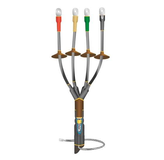 МУФТА КОНЦЕВАЯ ТЕРМОУСАЖИВАЕМАЯ МАРКИ 1КНТпН-4х(70-120) С НАКОНЕЧНИКАМИ БОЛТОВЫМИ НАРУЖНОЙ УСТАНОВКИ предназначена для оконцевания 4-х жильных силовых кабелей сечением 70, 95, 120 кв.мм с бумажной или с пластмассовой изоляцией, с броней или без брони, на напряжение до 1 кВ включительно. Универсальна в применении. Устанавливается на открытом воздухе при температуре окружающей среды от 50°С до +50°С и относительной влажности до 98%, в том числе в качестве мачтовой. Соответствует требованиям ГОСТ 13781.0-86 и ТУ Нева-Транс 3599-012-31930690-2016. Прошла необходимый комплекс независимых испытаний, на основании которых выдан сертификат соответствия Госстандарта России. Монтируется на разделке кабеля методом термоусаживания основных деталей из модифицированного полимера, входящих в комплект муфты, с помощью горелки или высокотемпературного фена. Оснащена жильными изоляторами, создающими на поверхности сухие зоны и увеличивающими длину путей токов утечки. Предусматривает крепление провода заземления к металлической оболочке кабеля, имеющего бумажную изоляцию, с помощью пружины постоянного давления и терки, а к бронелентам методом пайки. Сочетает в себе высокую эксплуатационную надежность и экологическую безопасность. Устойчива к ультрафиолетовому излучению и воздействию атмосферных осадков.