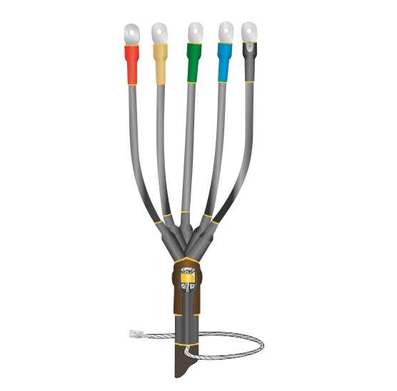 МУФТА КОНЦЕВАЯ ТЕРМОУСАЖИВАЕМАЯ МАРКИ 1ПКВ(Н)ТпбН-5х(150-240) С НАКОНЕЧНИКАМИ БОЛТОВЫМИ ВНУТРЕННЕЙ И НАРУЖНОЙ УСТАНОВКИ предназначена для оконцевания 5-ти жильных силовых кабелей сечением 150, 185, 240 кв.мм с пластмассовой изоляцией с броней на напряжение до 1 кВ включительно. Универсальна в использовании. Может быть установлена как внутри помещений всех категорий влажности, так и на открытом воздухе при температуре окружающей среды от -50град.С до +50град.С и относительной влажности до 98%. Соответствует требованиям ГОСТ 13781.0-86 и ТУ Нева-Транс 3599-012-31930690-2016. Прошла необходимый комплекс независимых испытаний, на основании которых выдан сертификат соответствия Госстандарта России. Монтируется на разделке кабеля методом термоусаживания основных деталей из модифицированного полимера, входящих в комплект муфты, с помощью горелки или высокотемпературного фена. Предусматривает крепление провода заземления к бронелентам кабеля с помощью пружины постоянного давления и терки. Имеет высокую эксплуатационную надежность и экологическую безопасность. Устойчива к ультрафиолетовому излучению и воздействию атмосферных осадков.