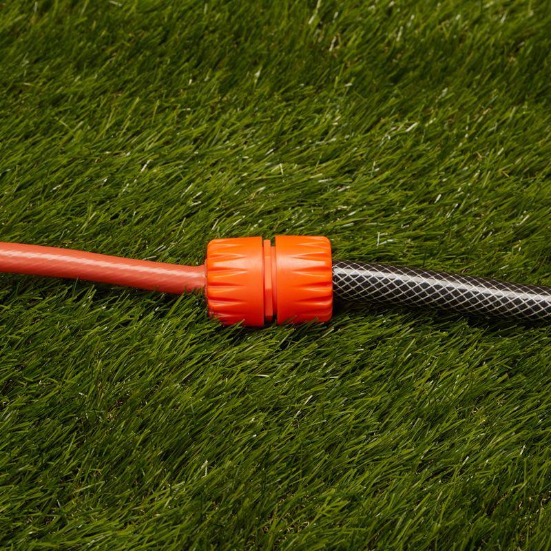 Муфта представляет собой изделие, предназначенное для соединения шлангов друг с другом. Используется при организации систем полива и систем водоснабжения. Позволяет увеличить шланг до необходимой длины, а также устранить повреждение. Благодаря конусообразному штуцеру муфта позволяет соединить шланги 1/2" с 1/2", или 1/2" с 3/4", или 3/4" с 3/4". Изделие выполнено из качественного и прочного пластика, устойчивого к воздействию внешних факторов окружающей среды. Обеспечивает надежное и герметичное соединение. Муфта просто и быстро устанавливается вручную без использования специальных инструментов и крепежных элементов.