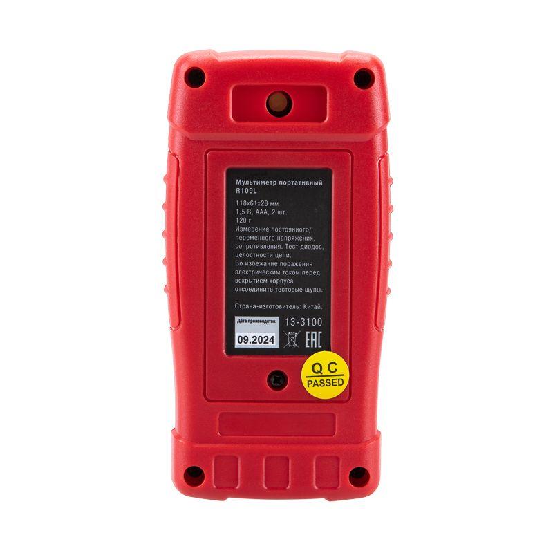 Портативный цифровой мультиметр R109L REXANT представляет собой современное устройство для точных измерений. Прибор оснащен системой СМАРТ, которая автоматически определяет функции и пределы измеряемых значений, обеспечивая удобство и эффективность использования. Также прибор имеет автоматический выбор диапазонов измерений. Предусмотрена функция удержания данных на дисплее DATA HOLD, которая позволяет запомнить данные, если измерение проводится в труднодоступном месте. Одна из основных особенностей прибора R109L REXANT - в отсутствии кругового переключателя, управление мультиметром и его функциями осуществляется только кнопками. Управление мультиметром осуществляется только с помощью кнопок. Параметры измерений: Постоянное напряжение: 4В/40В/400В/600В ± (1.0%) Переменное напряжение: 4В/40В/400В/600В ± (1.0%) Сопротивление: 4кОм/40кОм/400кОм/4MОм/40MОм ± (1.2%) Основные функции и особенности: Система СМАРТ – автоматическое определение функций и пределов измеряемых значений Автоматический выбор диапазонов измерений Функция памяти данных DATA HOLD Режим «прозвонка» Бесконтактный детектор напряжения NCV с индикацией Разрядность дисплея: 4000 отсчетов Количество измерений в секунду: 3 Функция подсветки рабочей области Автоматическое отключение питания через 15 минут Батареи: 1,5 В ААА, 2 шт. Вес с батареями: 120 г Габариты: 118х61х28 мм Комплект поставки: мультиметр, измерительные щупы, батареи, инструкция