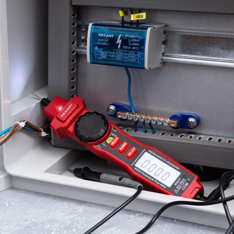Мультиметр-пробник R8211 REXANT – это компактный прибор, который совмещает функции тестера напряжения и мультиметра. Позволяет измерять постоянное и переменное напряжение, а также сопротивление. Отличительные особенности мультиметра: функция измерения емкости и бесконтактный датчик напряжения (NCV). Прибор оснащен следующими функциями: прозвонка целостности цепи, звуковая прозвонка, тест диодов, удержание данных (DATA HOLD). Предусмотрено два режима измерения: ручной и автоматический. Мультиметр имеет звуковую и световую индикацию, индикацию низкого заряда батареи, защиту от перегрузки, подсветку дисплея, подсветку рабочей зоны и автовыключение. Модель работает от 2 батареек 1,5 В ААА. Характеристики: Разрядность дисплея: 4000 отсчетов Переменное напряжение: 400мВ-4В-40В-400В (±0.8%) 600 В (±1.3%) Постоянное напряжение: 4В-40В-400В (±1/0%) 600 В (±1.2%) Переменный ток: 40мА - 200 мА (±1.0%) Постоянный ток: 40мА - 200мА (±1.2%) Емкость: 4нф - 40нф-400нф - 4-мкф-40мкф - 400 мкф- ( ±3.0%) 4мФ ( ±5.0%) Сопротивление: 400 Ом - 4кОм - 40кОм- 400кОм - 4МОм ( ±1.0%) 40 МОм (±1.2%) Питание: батарея 2х1,5В тип ААА Размеры: 204x39x30 мм Вес: 80 г Комплект поставки: прибор, щуп, батареи, инструкция