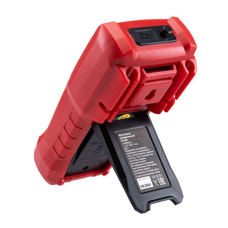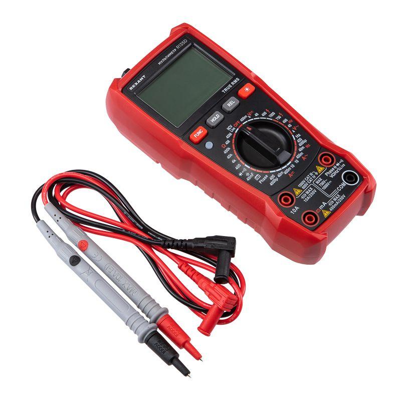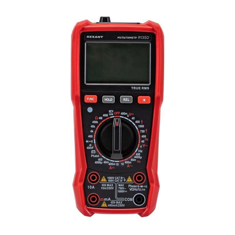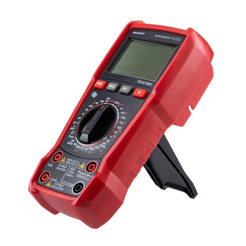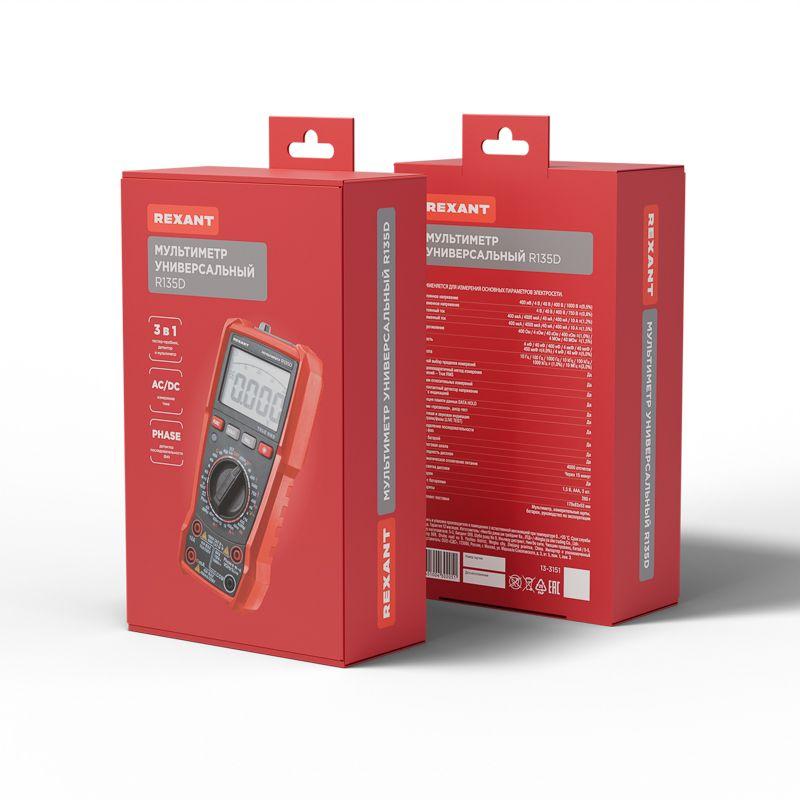 Многофункциональный цифровой мультиметр R135D REXANT сочетает высокую точность, удобство использования и широкий спектр функций. Прибор оснащен ручным выбором пределов измерений и большим дисплеем на 4000 разрядов. Среднеквадратичный метод измерения значений (True RMS) гарантирует точные результаты измерений. Графическая шкала выбора режима измерений упрощает процесс работы. Параметры измерений: Постоянное напряжение: 400мВ/4В/40В/400В/1000В ± (0.5%) Переменное напряжение: 4В/40В/400В/750В ± (8.0%) Постоянный/переменный ток: 400мкA/4000мкA /40мA/400мA/10A ± (1.2%/1.5%) Сопротивление: 400Ом/4кОм/40кОм/400кОм/4МОм/40MОм ± (1.5%) Емкость: 4нф/40нф/400нф/4мкф/40мкф/400мкф/4мф/40мф ± (5.0%) Частота: 4Гц/40Гц/400Гц/4кГц/40кГц/400кГц/4МГц ± (3.0%) Основные функции и особенности: Ручной выбор пределов измерений Среднеквадратичный метод измерения значений – True RMS Режим относительных измерений Бесконтактный детектор напряжения NCV с индикацией Функция памяти данных DATA HOLD Режим «прозвонка», диод- тест Световая и звуковая индикация нейтрали/фазы (LIVE TEST) Определение последовательности трех фаз Тест батарей Аналоговая шкала Разрядность дисплея: 4000 отсчетов Количество измерений в секунду: 3 Автоматическое отключение питания через 15 минут Батареи: 1,5 В ААА, 3 шт. Вес с батареями: 260 г Габариты: 179х83х53 мм Комплект поставки: мультиметр, измерительные щупы, батареи, инструкция