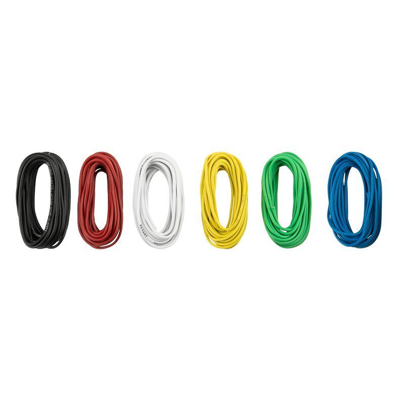 Набор проводов ПГВА предназначен для соединения автотракторного электрооборудования и приборов с номинальным напряжением до 48 В. Провода изготавливаются для автомобильной проводки, а также элементов питания и управления. Каждый провод состоит из многожильной токопроводящей медной жилы, покрытой изоляцией из ПВХ-пластиката. Провода, входящие в состав набора, устойчивы к воздействию масла, бензина, дизельного топлива, тормозной жидкости, охлаждающей жидкости и моющих средств. Размер: 1х0,75 мм. Цвета: белый, желтый, зеленый, красный, синий, черный. Длина: 3 метра.