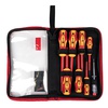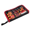 Мы предлагаем оптимальный ассортимент для выполнения большинства задач, стоящих как перед профессиональным электромонтажником, так и перед домашним мастером, а также наилучшее решение для компактного хранения инструмента и его удобной переноски- мягкий пенал, отшитый из современных синтетических водо-и грязеотталкивающих тканей с мягкой подкладкой. Для каждого предмета предусмотрена своя ячейка- инструмент не потеряется после работы.