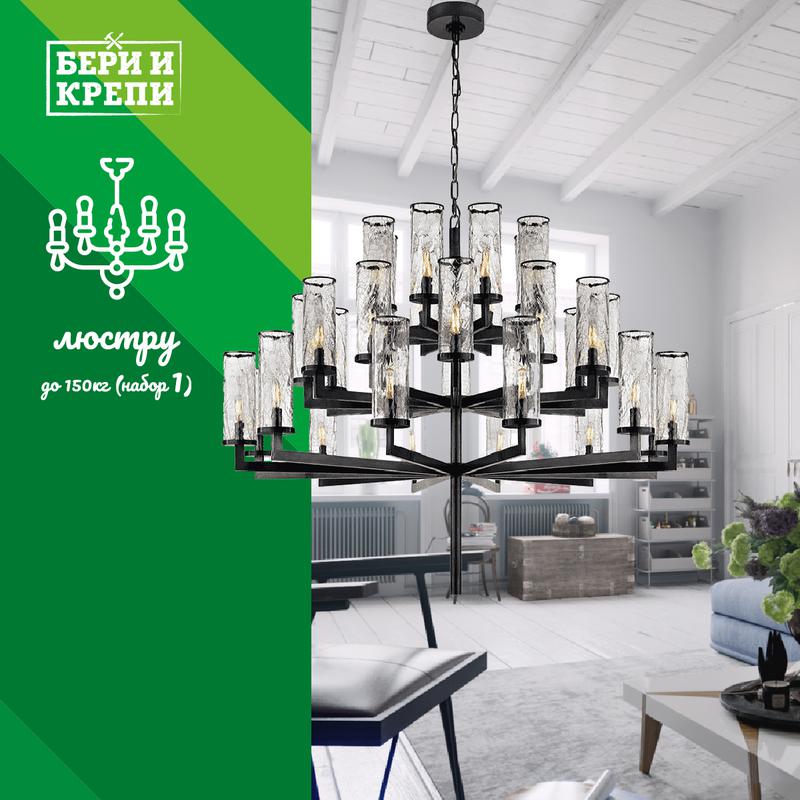 Набор для крепления люстры весом до 150 кг к бетону. Идеальное соотношение элементов для выполнения этой задачи быстро и комфортно. КОМПЛЕКТАЦИЯ Болт анкерный 10х60 с кольцом М8 - 1 шт