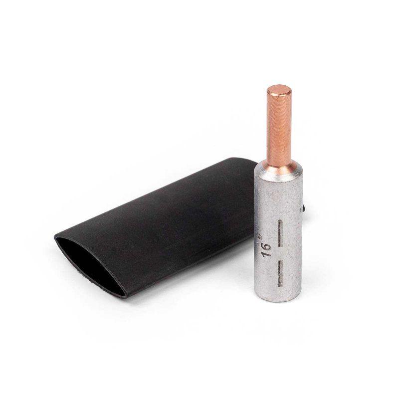 • Предназначены для оконцевания опрессовкой алюминиевых кабелей и проводов и последующего подключения их к выводам автоматических выключателей и прочим устройствам с ограниченной шириной контактной клеммы • Каждый набор состоит из пяти алюмомедных штыревых наконечников и термоусаживаемых манжет с клеевым слоем • Материал наконечников: электротехнический алюминий марки АД1 и медь марки М1 • Материал термоусадочной трубки: полиолефин, не поддерживает горение • Рабочее напряжение: до 35 кВ • Медная и алюминиевая части наконечника соединены между собой методом фрикционной сварки и обеспечивают контакт металлов на молекулярном уровне • Термоусадочная трубка усаживается поверх опрессованного соединения • Термоусадочные трубки с клеевым слоем и коэффициентом усадки 3:1 обеспечивают полную герметизацию и изоляцию соединений • На трубной части наконечников нанесена разметка, определяющая местоположение и количество опрессовок • Обеспечивают прямое подключение проводов СИП к автомату без использования дополнительных приспособлений