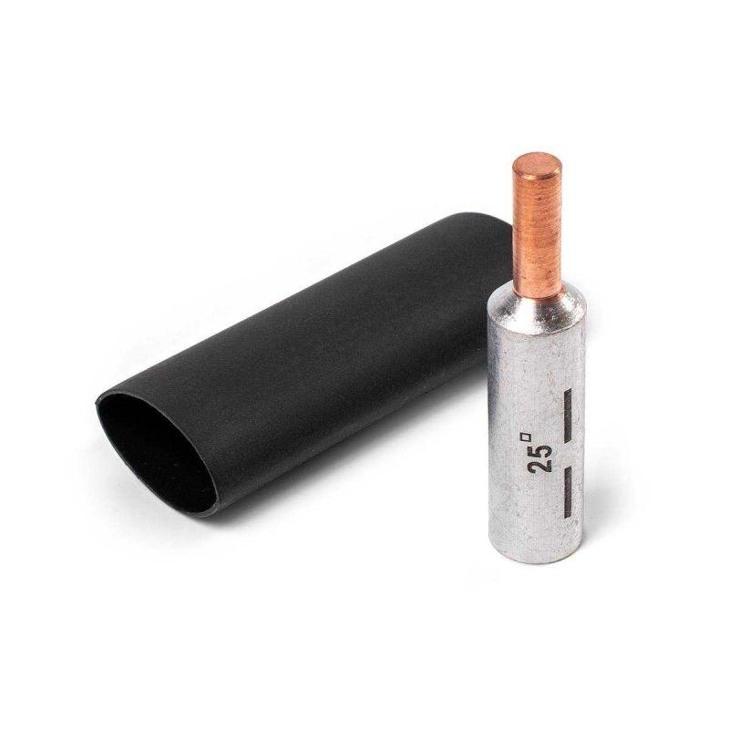• Предназначены для оконцевания опрессовкой алюминиевых кабелей и проводов и последующего подключения их к выводам автоматических выключателей и прочим устройствам с ограниченной шириной контактной клеммы • Каждый набор состоит из пяти алюмомедных штыревых наконечников и термоусаживаемых манжет с клеевым слоем • Материал наконечников: электротехнический алюминий марки АД1 и медь марки М1 • Материал термоусадочной трубки: полиолефин, не поддерживает горение • Рабочее напряжение: до 35 кВ • Медная и алюминиевая части наконечника соединены между собой методом фрикционной сварки и обеспечивают контакт металлов на молекулярном уровне • Термоусадочная трубка усаживается поверх опрессованного соединения • Термоусадочные трубки с клеевым слоем и коэффициентом усадки 3:1 обеспечивают полную герметизацию и изоляцию соединений • На трубной части наконечников нанесена разметка, определяющая местоположение и количество опрессовок • Обеспечивают прямое подключение проводов СИП к автомату без использования дополнительных приспособлений