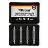 Набор экстракторов серии Профи предназначен для извлечения саморезов и винтов с поврежденными внутренними шлицами. Набор состоит из четырех двухсторонних экстракторов. С одной стороны экстракторы имеют форму конусной спирали с левой резьбой, с другой стороны короткое сверло для засверливания отверстия. Такая конструктивная особенность упрощает работу с инструментом. Экстракторы изготовлены из высококачественной быстрорежущей стали (HSS 4341), что обеспечивает их прочность и долговечность. Типоразмер: №1 (6 мм -+0, 5 мм); №2 (10 мм -+0, 5 мм); №3 (12 мм -+0, 5 мм); №4 (14 мм -+0, 5 мм).