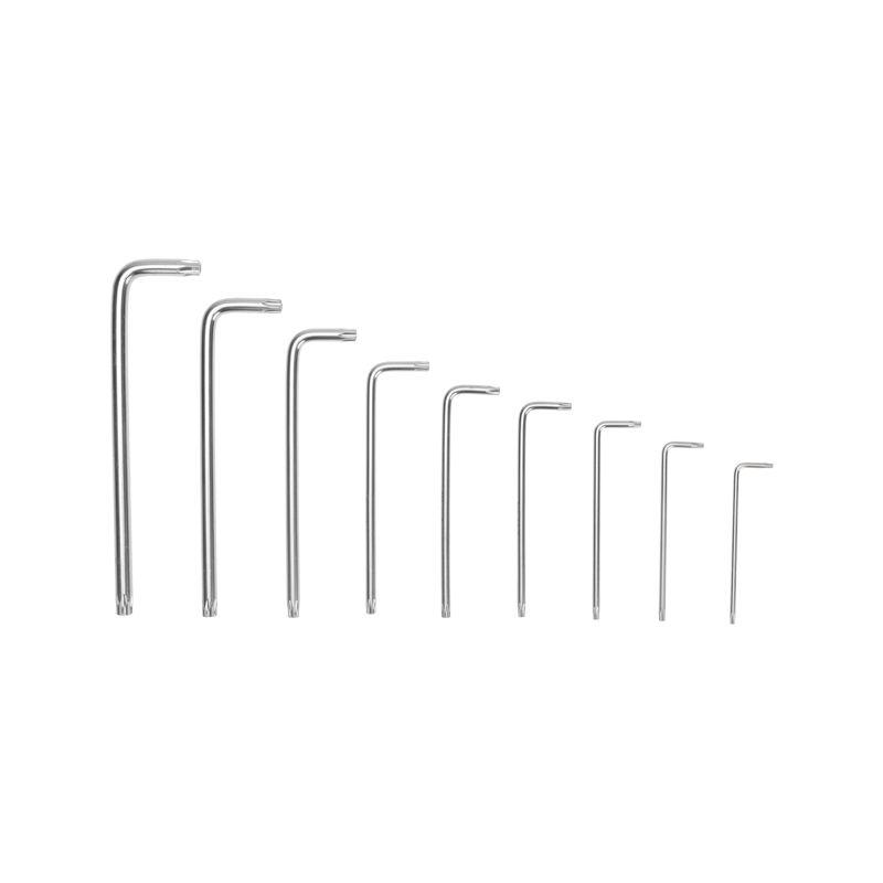 Набор ключей имбусовых KRANZ предназначен для работы с крепежом, оснащенным шлицом TORX (звездочкой). Ключи имеют Г-образную форму, изготовлены из высококачественной стали. Антикоррозийное покрытие обеспечивает надежную защиту инструмента от негативных внешних воздействий. Это значительно продлевает срок службы. Технические характеристики: Тип: Torx-Tamper Форм-фактор: Г-образный Минимальный размер: ТТ10 Максимальный размер: ТТ50 Тип ключей: удлиненные Количество в наборе: 9 Марка стали: CrV Состав: T10, 15, 20, 25, 27, 30, 40, 45, 50 Ключи изготовлены из хромованадиевой стали Твердость рабочей части: 48-50 HRС Для удобства хранения ключи поставляются в пластиковом чехле