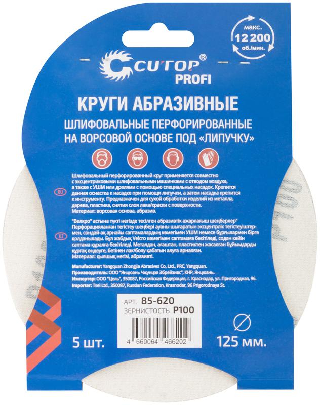 Набор кругов абразивных шлифовальных перфорированных на ворсовой основе под "липучку" Р100 125мм (уп.5шт) Profi Cutop 85-620