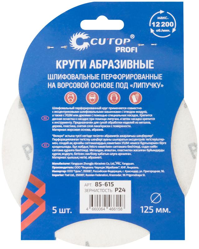 Набор кругов абразивных шлифовальных перфорированных на ворсовой основе под "липучку" Р24 125мм (уп.5шт)Profi Cutop 85-615