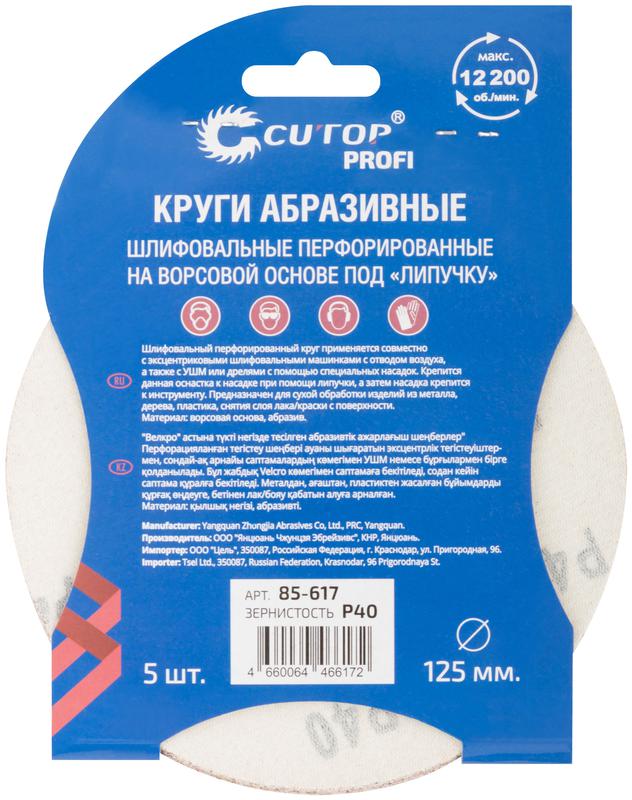 Набор кругов абразивных шлифовальных перфорированных на ворсовой основе под "липучку" Р40 125мм (уп.5шт) Profi Cutop 85-617