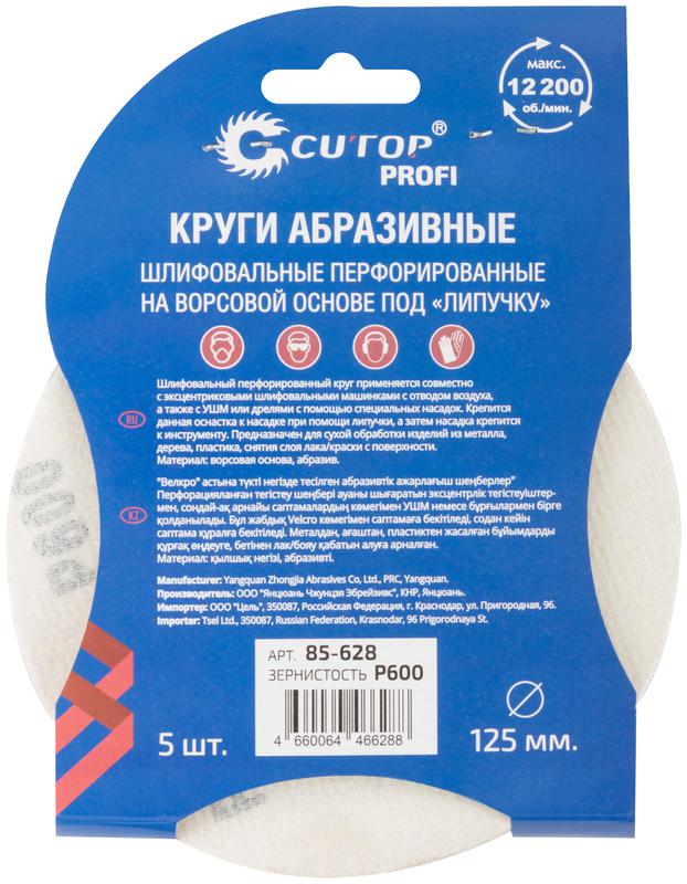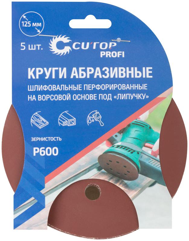 Набор кругов абразивных шлифовальных перфорированных на ворсовой основе под "липучку" Р600 125мм (уп.5шт) Profi Cutop 85-628