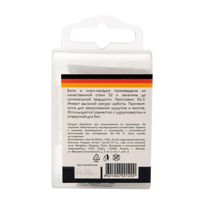 Набор односторонних насадок с магнитными держателями используется для работы с крепежом типа Phillips и Pozidriv и с крепежом с внешним шестигранником с помощью шуруповерта или отвертки-адаптера. Насадки изготовлены из легированной высокопрочной стали S2, что дает повышенную устойчивость к изломам и деформации в наиболее нагружаемых точках касания. Размеры наконечников подходят для работы с крепежом с внешним шестигранником диаметром 8 и 10 мм, а также для шлицев типа PH и PZ с резьбовым диаметром 3,1 – 5 мм. Намагниченные наконечники облегчают крепление и фиксацию крепежа на бите. Шестигранный хвостовик подходит для установки на все виды шуруповертов и отверток-адаптеров и не дает проворачиваться бите в патроне инструмента. Набор состоит из бит с наконечниками PH2/PZ2 (2 шт.) и ключей-насадок 8х48/10х48 мм (2 шт.). Упакован в удобный для хранения пластиковый кейс.