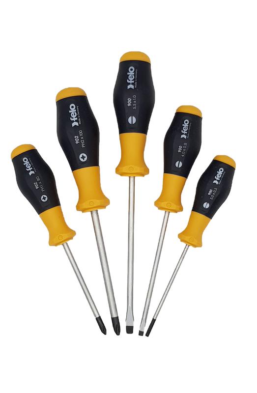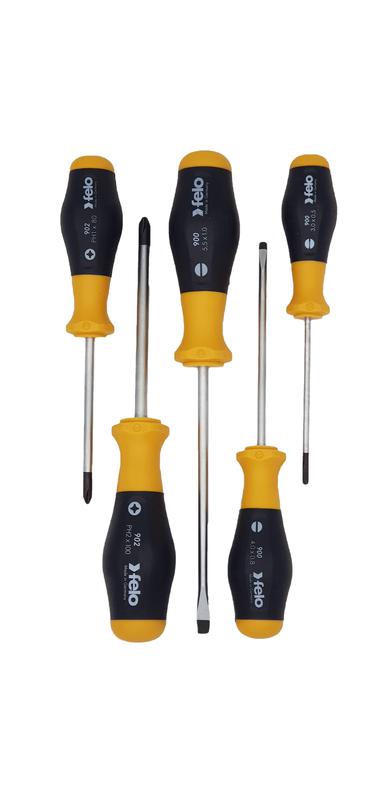 Набор отверток 900-ой серии предназначен для работ с различным крепежом SL и PH. Эргономичный дизайн рукоятки и противоскользящий материал (Soft Grip) помогает обеспечить наибольшую передачу усилия. Специальный дизайн двухкопонентной рукоятки не позволяет инструменту скатываться с поверхности. Лезвия изготовлены из специальной хромомолибден-ванадиевой стали для достижения наилучшего результата при работе! Точная посадка в крепеж обеспечивается за счет черного наконечника (Black-Tip). Состав набора: SL: 3,0 x 80 / 4,0 x 100 / 5,5 x 125; PH 1 x 80 / PH 2 x 100.