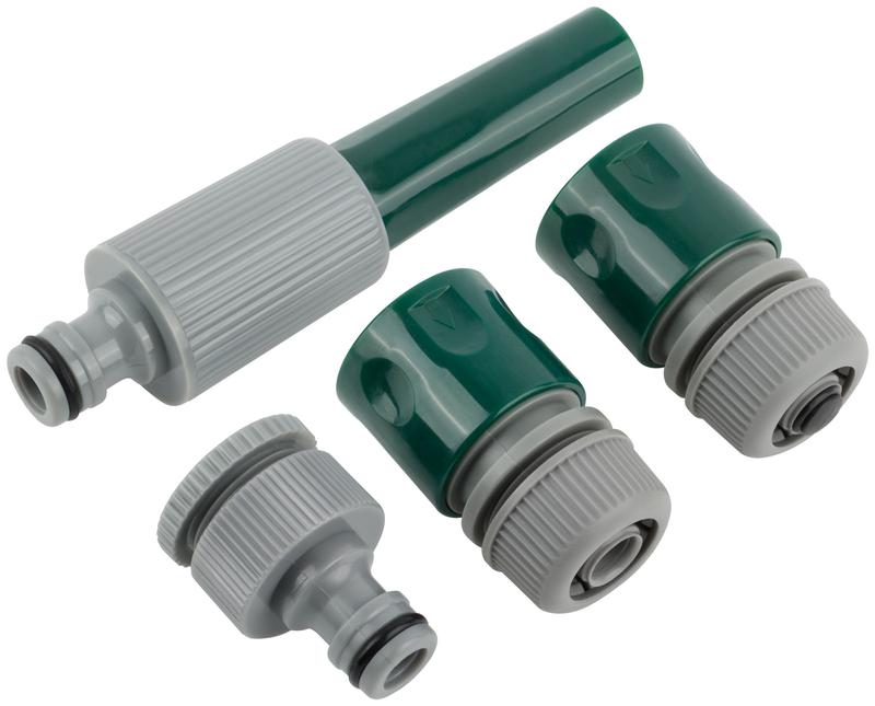 Набор поливочный 4шт 1/2дюйм ( насадка для полива; соединитель; соединитель с автостопом; адаптер внешний ) FIT 77291
