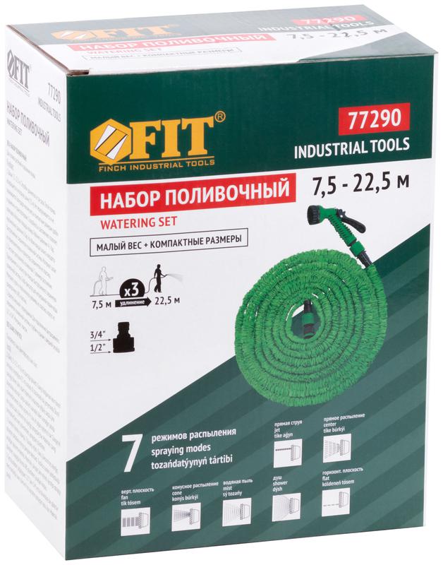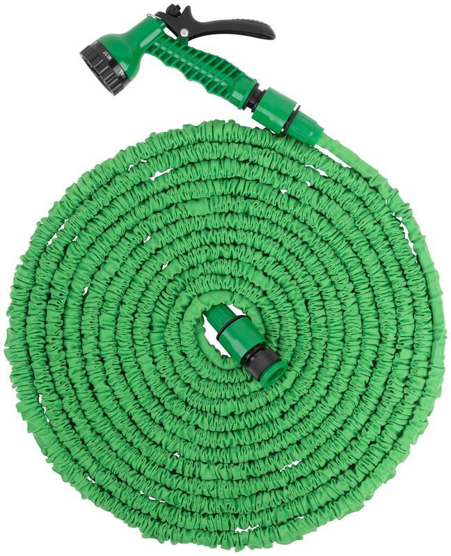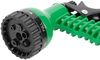 Для полива и орошения почвы. В наборе: шланг поливочный, способный удлиняться в три раза и возвращаться после полива в исходную длину; пистолет-распылитель с 7 режимами распыления и скобой-фиксатором для непрерывной подачи воды; адаптер внешний с переходником для подключения к трубам и кранам с внешней резьбой 1/2" и 3/4"; быстросъемные соединители поливочной системы на обоих концах шланга. Материал: шланг из термополиэтилена и полиэстера; быстросъемные соединители, адаптер внешний, курок пистолета и переключатель режимов пистолета из пластика; корпус пистолета из ударопрочного ABS пластика. Упаковка: картонная коробка.