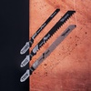 Набор полотен для электролобзика предназначен для распила мягкой древесины, фанеры, ДСП, столярных плит, ДВП определенной толщины, включает также пилку по оргстеклу. Будет полезен профессиональным мастерам при выполнении столярных, ремонтных и строительных работ. Пилки выполнены из высокоуглеродистой стали, поэтому сочетают в себе такие свойства, как прочность, износостойкость и пластичность. Подходят для быстрого, чистого, а также фигурного реза. Улучшенная закалка токами высокой частоты увеличивает твердость зубьев полотен и обеспечивает высокий ресурс. Универсальный Т-образный хвостовик подходит для установки на большинство моделей электролобзиков. Набор включает в себя полотна с индексами T101B/T111C/T119BO (3 шт.).