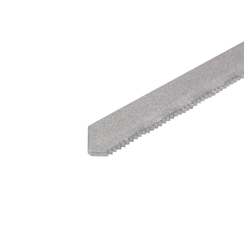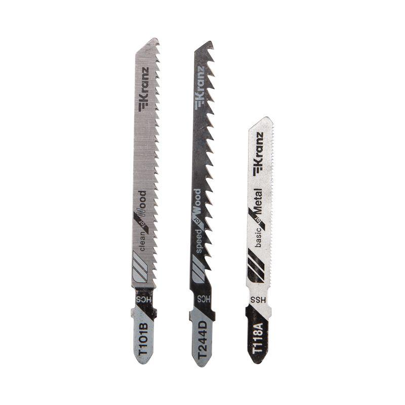 Набор полотен для электролобзика предназначен для распила древесины, фанеры и металлических листов определенной толщины. Пригодится профессиональным мастерам при выполнении столярных, ремонтных и строительных работ. Пилки выполнены из высокоуглеродистой стали, поэтому сочетают в себе такие свойства, как прочность, износостойкость и пластичность. Подходят для чистого распила, а также для быстрого фигурного реза. Улучшенная закалка токами высокой частоты увеличивает твердость зубьев полотен и обеспечивает высокий ресурс. Универсальный Т-образный хвостовик подходит для установки на большинство моделей электролобзиков. Набор включает в себя полотна с индексами T101B/T118A/T244D (3 шт.).