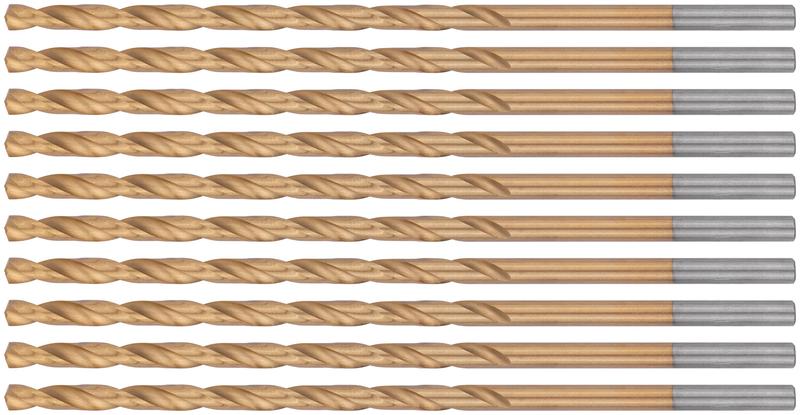 Удлиненные сверла по металлу FIT IT с титановым покрытием предназначены для сверления отверстий в углеродистых и легированных сталях, серых и ковких чугунах, цветных металлах и пластике. Сверла изготовлены из высококачественной быстрорежущей стали Р9М3, что обеспечивает их долговечность и надежность в использовании. Титановое покрытие увеличивает срок службы оснастки и обеспечивает точное и чистое сверление. Сверло изготовлено методом вышлифовки профиля, что повышает плавность сверления и чистоту готовых отверстий. Сверла имеют высший класс точности А1 и высверливают отверстия с высокоточным диаметром.