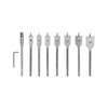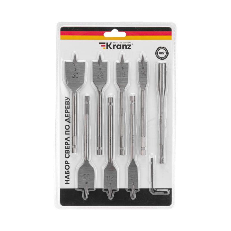 Набор перовых сверл популярных диаметров используется для сверления отверстий в древесине твердых и мягких пород, ДВП, ДСП, фанере. Будет полезен для выполнения столярных работ. Сверла выполнены из закаленной инструментальной стали, которая повышает износостойкость и долговечность инструмента. Каждое сверло состоит из рабочей части и шестигранного хвостовика. В центре рабочей части находится выступ, благодаря которому можно зафиксировать инструмент во время засверливания. С двух сторон от центрального выступа размещены режущие лезвия. Благодаря подрезателям на режущих кромках рабочей части в отверстиях получаются ровные края. Хвостовая часть, выполненная в виде шестигранника, надежно закрепляет сверло в патроне инструмента. Набор состоит из перовых сверл диаметром 14-16-18-20-22-25-30х152 мм (7 шт.), удлинителя и углового ключа.