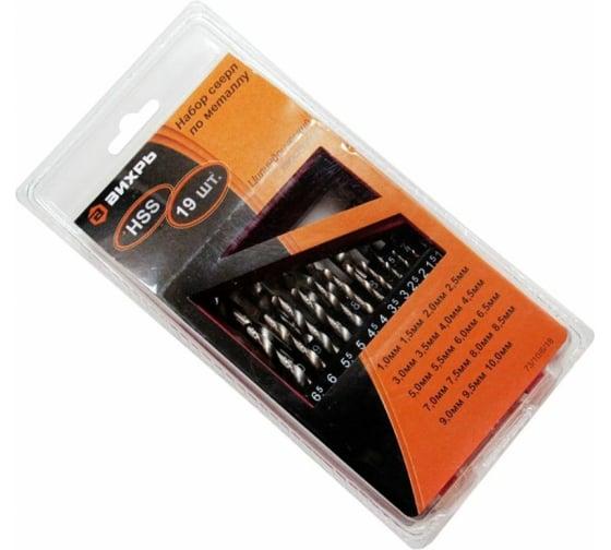 Набор сверл по металлу 1-10мм (через 0 5мм) HSS металл.коробка цилиндрический хвостовик (уп.19шт) Вихрь 73/10/6/18
