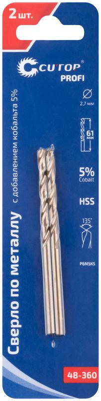 Набор сверл по металлу Profi 2.7х61мм с кобальтом 5проц. (уп.2шт) Cutop 48-360
