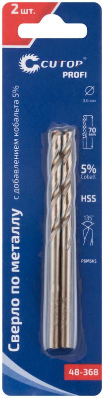 Набор сверл по металлу Profi 3.6х70мм с кобальтом 5проц. (уп.2шт) Cutop 48-368