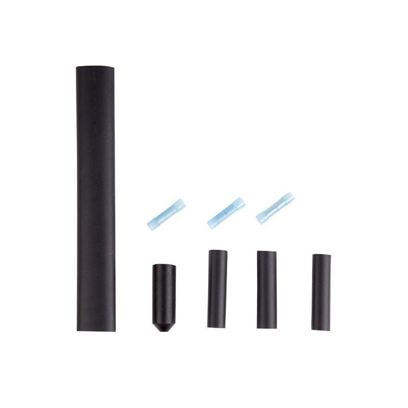 Универсальный набор REXANT используется для концевой заделки саморегулирующего греющего кабеля и герметизацию его соединения с источником питания. Это обеспечивает термоусаживаемая трубка, внутри которой нанесен слой клея. Крепление термоусадочной трубки и заглушки на шнуре при условии наличия на нем влаги категорически запрещено. Установку можно осуществлять промышленным феном или горелкой. После усадки поверхность кабеля должна быть гладкой, без морщин и вздутий. Благодаря этому герметичность будет обеспечена, а греющий кабель будет надежно заизолирован от попадания влаги, пыли и так далее. В комплект входят: 18х200 мм внешняя термоусадочная трубка с клеевым слоем 12х40 мм концевая термоусадочная заглушка (колпачок) 9х50 мм х 3шт. термоусадочная трубка с клеевым слоем 3 шт. гильзы 2,5 кВт в нейлоновой оболочке.