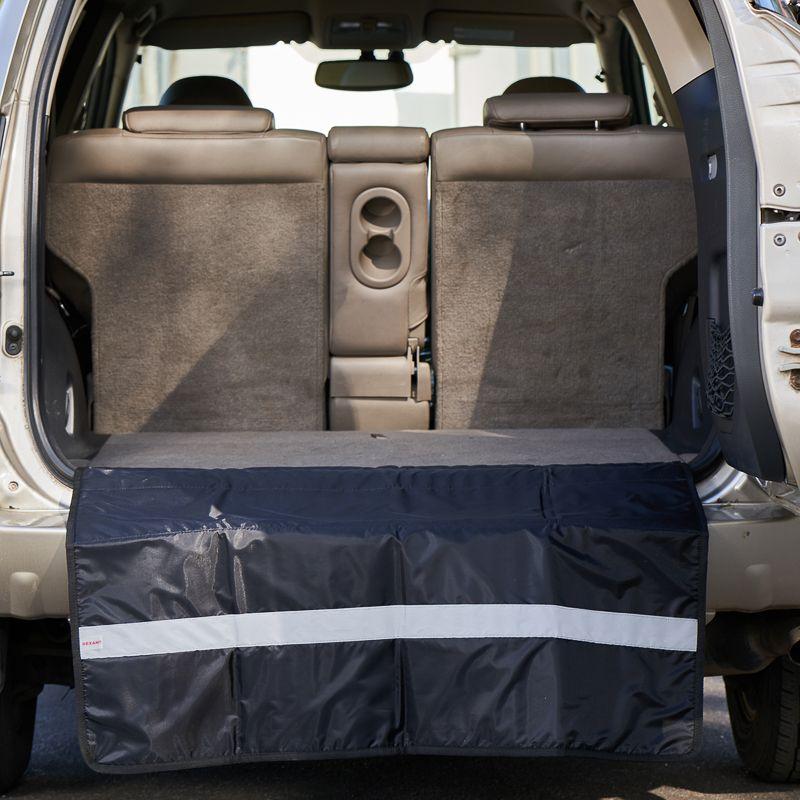Защитная накидка для бампера автомобиля – это универсальный аксессуар, который является надежным помощником любого автомобилиста. Изделие фиксируется на внутренней обшивке автомобиля при помощи специальных липучек и защищает от механических повреждений при загрузке и разгрузке багажного отсека Накидка также предохраняет обивку багажника от грязи, пыли и пятен масла и защищает одежду от загрязнений. Изделие выполнено из износостойкого материала, который легко моется. На защитной накидке предусмотрена светоотражающая лента, которая обеспечивает повышенную видимость автомобиля в условиях плохой видимости. Это особенно важно в случае необходимости передвижения с открытым багажником в темное время суток.
