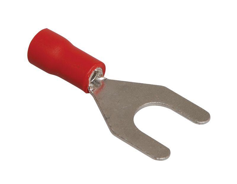 Наконечник вилочный предназначен для оконцевания опрессовкой проводов с медными жилами и используется при монтаже электрических узлов, где предусмотрено соответствующее контактное соединение на основе винтовой фиксации. Провести полный демонтаж крепежного соединения возможно, лишь ослабив винтовую фиксацию.