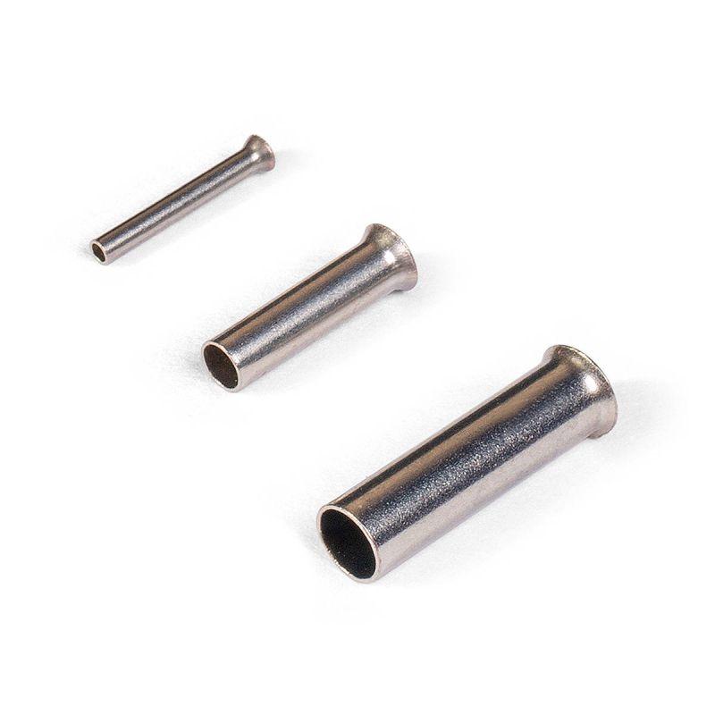 • Предназначены для оконцевания методом опрессовки многожильных медных проводников. Трансформируют концы многожильных проводов в монолитные штифты • Размеры втулок НШВ рассчитаны для монтажа одного проводника соответствующего сечения. Однако, поскольку пластмассовая ограничительная манжета отсутствует, втулки могут быть также использованы для соединения двух и более проводников • Завод жилы во втулку осуществляется со стороны раструба • Материал коннектора: медь марки М1 • Покрытие: электролитическое лужение • Температурный диапазон эксплуатации: от -55 °C до +135 °C • Благодаря расширенному температурному диапазону, наконечники НШВ рекомендованы к применению для проводов с термостойкой изоляцией из кремний-органической резины марок ПРКА, ПРКС, ПВКВ, РКГМ • Втулки без манжеты незаменимы для оконцевания проводов с толстой изоляцией (например, кабелей с резиновой изоляцией КГ и КОГ) • Наконечники НШВ представлены со стандартной длиной втулки. Под заказ возможно исполнение наконечников НШВ с увеличенной длиной втулки