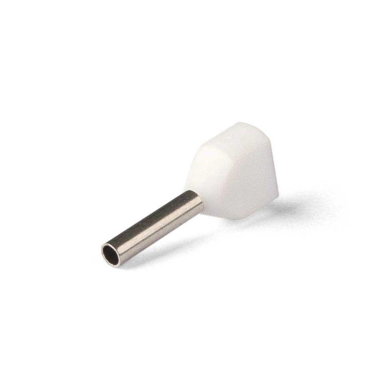 • Для монтажа сдвоенных проводов одинакового сечения • Предназначены для оконцевания методом опрессовки гибких многопроволочных медных проводников. Трансформируют концы многожильных проводов в монолитные штифты • Современная альтернатива обязательному облуживанию концов многожильных проводников при подсоединении к клеммам • Размеры изолированных манжет и втулок наконечников НШВИ(2) рассчитаны для монтажа и подключения двух проводников • В условиях высокой плотности монтажа двойные втулочные наконечники являются единственно возможным контактным соединением двух проводников • Материал коннектора: медь марки М1 • Покрытие коннектора: электролитическое лужение • Материал изоляции: полипропилен. Не содержит галогенов • Термостойкость изоляции: 105 °C • Цвет изолирующих манжет выполнен в соответствии с цветовой маркировкой DIN 46228, часть 4 • Одинарные и двойные втулочные наконечники «КВТ» представлены в одинаковой цветовой гамме стандарта DIN, что облегчает их поразмерную идентификацию • Коническая форма манжеты, тип «Easy Entry», облегчает заведение многожильного провода внутрь медной втулки • Обжим провода поверх медной втулки