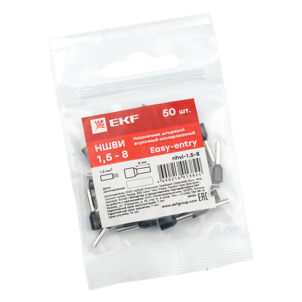 Наконечник штыревой втулочный изол. НШвИ 1.5-8 (уп.50шт) EKF nhvi-1.5-8