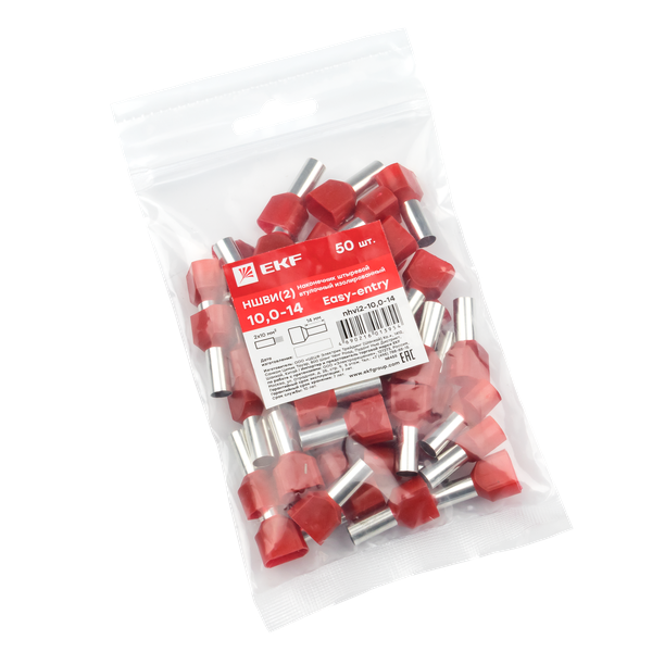 Наконечник штыревой втулочный изол. НШвИ(2) 10.0-14 (уп.50шт) EKF nhvi2-10.0-14