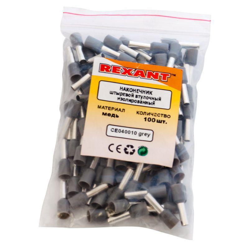 Наконечник штыревой втулочный изолир. (НШВИ F-9мм) 4кв.мм (СЕ040010grey) сер. Rexant 08-0821