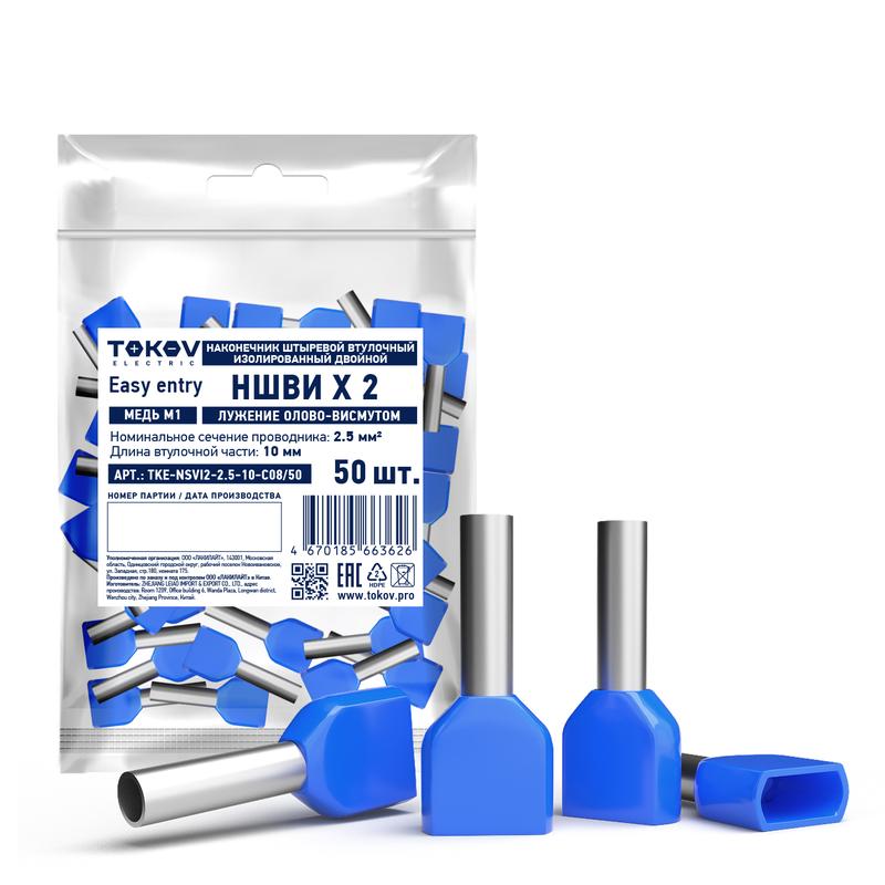 Наконечник штыревой втулочный изолированный двойн. НШВИ(2) 2.5-10 TOKOV ELECTRIC TKE-NSVI2-2.5-10-C08/50