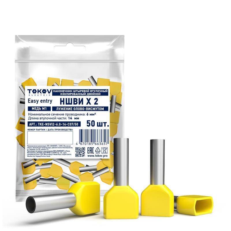 Наконечник штыревой втулочный изолированный двойн. НШВИ(2) 6.0-14 TOKOV ELECTRIC TKE-NSVI2-6.0-14-C07/50