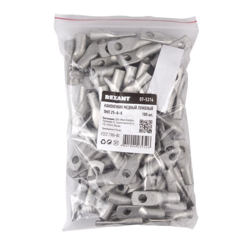 Наконечник предназначен для оконцевания проводов и кабелей с медными и жилами посредством опрессовки для последующего болтового соединения проводника с оборудованием или шиной. Изготавливается по ГОСТ 7386-80. Наконечник выполнен из электротехнической меди марки М2, подвергнутой электролитическому лужению, которое осуществляется путем нанесения слоя олова-висмута (Sn-Bi) на поверхность меди. Это гарантирует надежную защиту контактных соединений, препятствует разрушению основного материала, а также позволяет применять изделие в агрессивной среде. Структура обозначения: Т — Труба — полуфабрикат, из которого изготовлен наконечник; М — Медь — материал, из которого изготовлен наконечник; Л — Луженый — покрытие; 25 — номинальное сечение наконечника, мм2; 8 — диаметр контактного стержня, мм; 8 — внутренний диаметр хвостовика, мм;