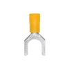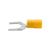 Кабельные наконечники – это специальные аксессуары, которые используются для простого подсоединения медных жил к оборудованию и механизмам и подключения индикаторов. Они также могут использоваться в низковольтных цепях. Изолированные наконечники обжимаются непосредственно через изоляцию, поэтому ДКС использует для изоляции только качественные материалы. Наконечники соединяются методом «вилка-розетка» («папа-мама»). Материал контактной части – медь. Наконечник имеет форму вилки. Луженое покрытие обеспечивает защиту от коррозии. Фланец изолирован. Цвет изоляции - желтый. Номинальное поперечное сечение - 2,5-6 мм2.